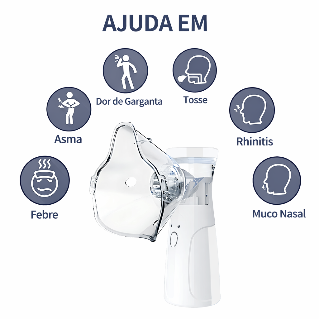 Eficaz e Rápido: Com tecnologia de malha, oferece uma nebulização eficiente para aliviar sintomas respiratórios com rapidez e qualidade.