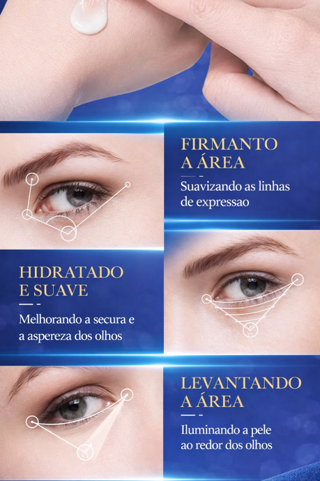 Ação Antirrugas Potente: Focado em "Firming" (Firmeza), ele ajuda a esticar a pele flácida ao redor dos olhos, combatendo os pés de galinha e linhas de expressão.