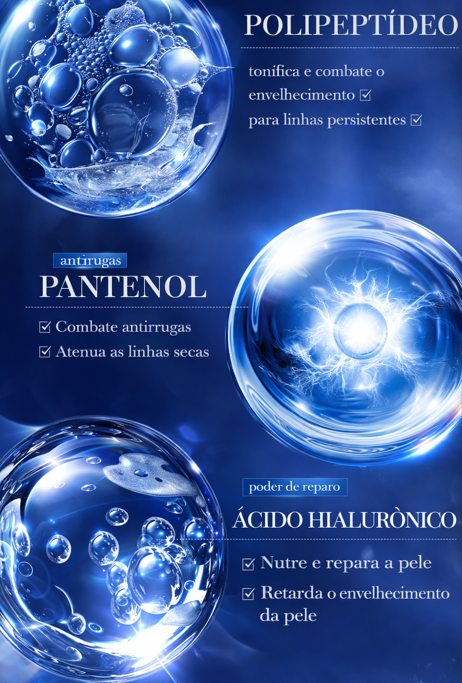 Ingredientes Chave: Extrato de Caviar, Polipeptídeos, Ácido Hialurônico.