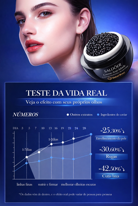 A SaludBrasil apresenta o SaludCaviar Luxe, nossa joia da cosmética. Unindo a biotecnologia dos Polipeptídeos (que reconstroem a estrutura da pele) com a riqueza mineral do Caviar, criamos um tratamento que não apenas hidrata, mas "alimenta" suas células para retardar o envelhecimento ("Retards Aging").