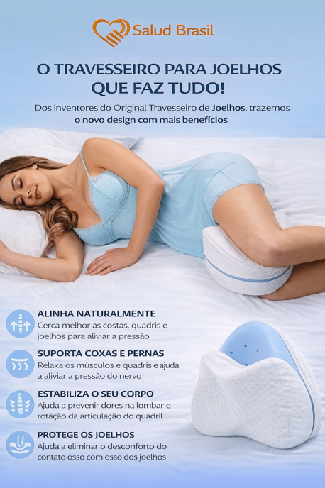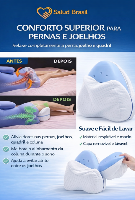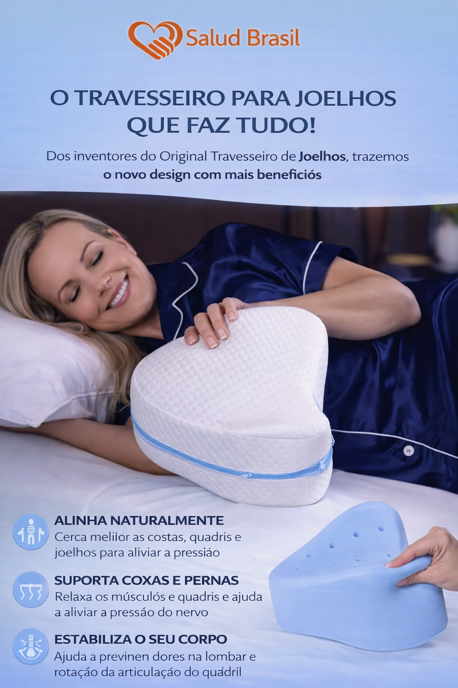 A SaludBrasil apresenta o SaludNight Confort, a solução simples e eficaz para corrigir sua postura enquanto você sonha. Colocado entre as pernas, ele preenche o espaço vazio e mantém suas pernas paralelas, restaurando o equilíbrio natural do corpo.