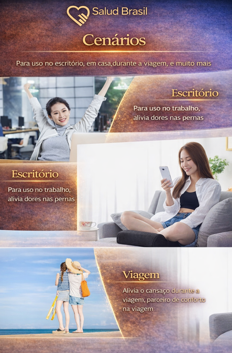 A SaludBrasil apresenta o SaludPosture Foot, o suporte ergonômico essencial para o seu Home Office. Diferente dos apoios rígidos de plástico, ele oferece uma superfície macia e acolhedora, incentivando você a manter a postura correta sem esforço.