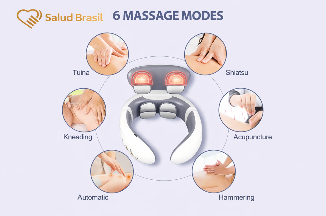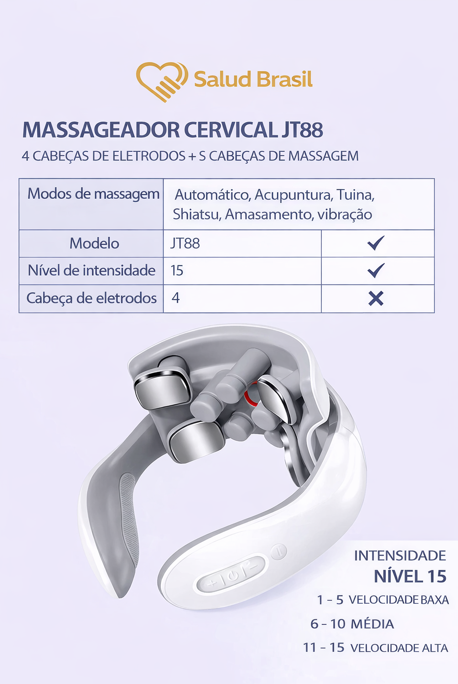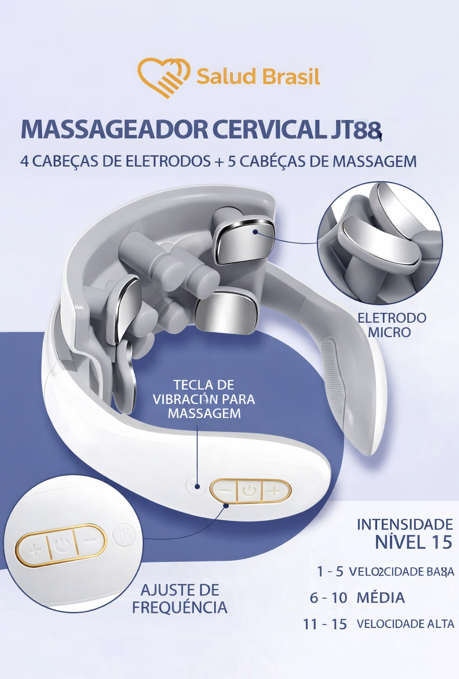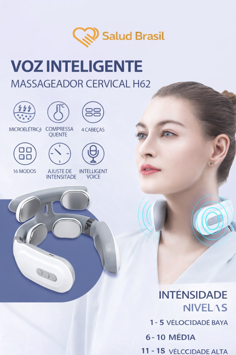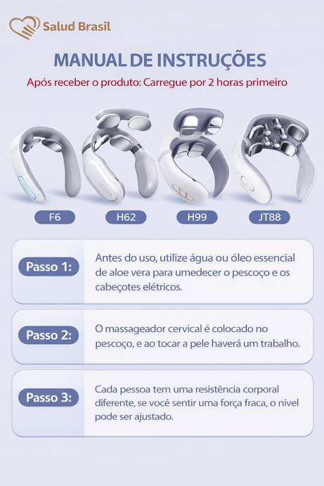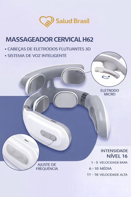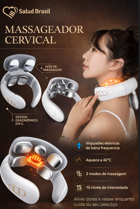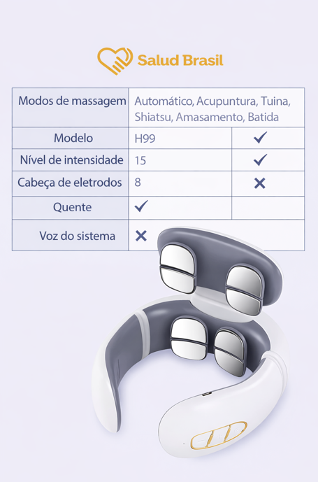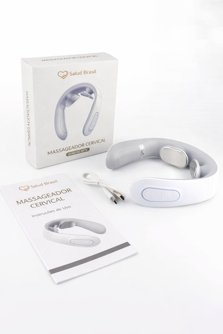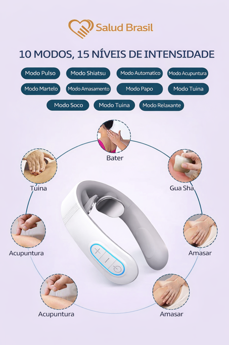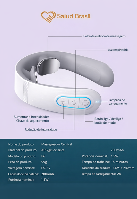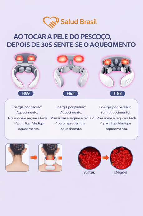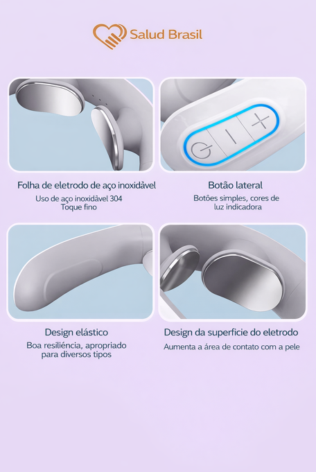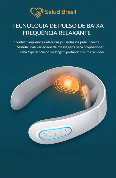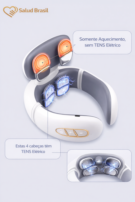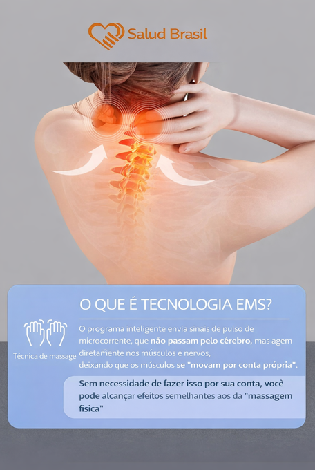 A SaludBrasil apresenta o SaludSmart Cervical, seu fisioterapeuta portátil. Diferente de massageadores mecânicos que podem machucar, este dispositivo inteligente utiliza Pulsos Elétricos de Baixa Frequência (TENS) para simular massagens terapêuticas reais, bloqueando os sinais de dor e promovendo a liberação de endorfinas.