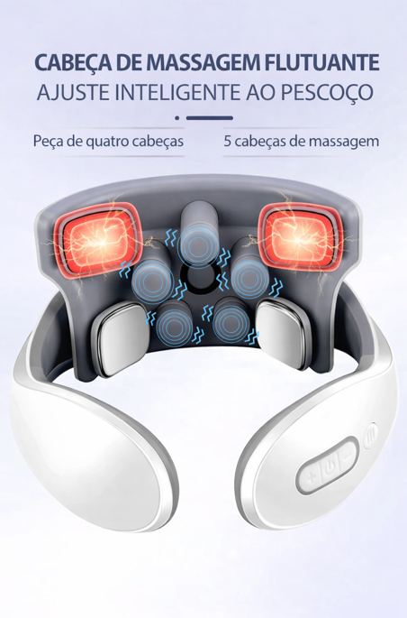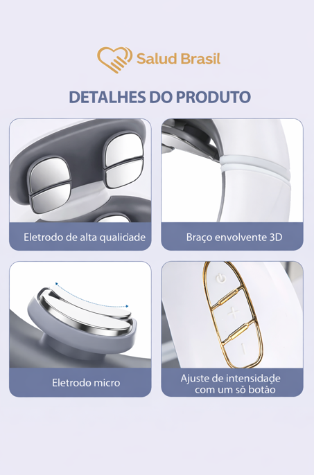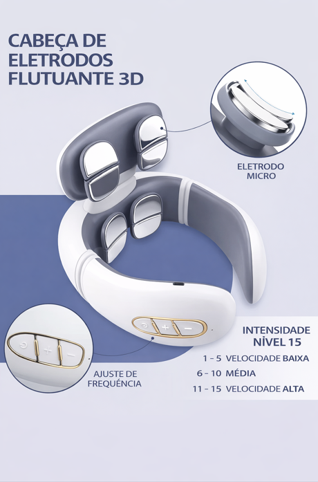 Design Ergonômico em "U": Com eletrodos flutuantes 360º e braços elásticos, ele se ajusta perfeitamente a qualquer espessura de pescoço, garantindo contato total com a pele.
