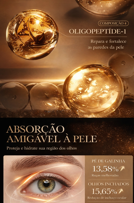 Efeito Tensor (Lifting): O ativo principal (Peptídeo Syn-Ake) ajuda a firmar a pele flácida ao redor dos olhos, levantando o olhar e suavizando a aparência dos "pés de galinha".