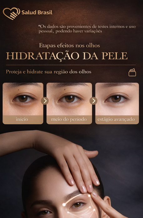 P: Quanto tempo demora para fazer efeito? R: O efeito hidratante e tensor ("esticadinha") é percebido logo após a aplicação. Para redução profunda de rugas e clareamento de olheiras, recomenda-se uso contínuo por 28 dias.